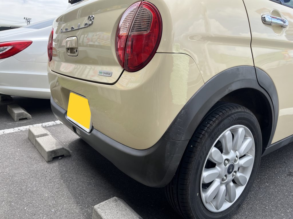 今回はリヤドアとクォーター、センターピラー、の鈑金修理とリヤバンパーのタッチアップ修理をしました!