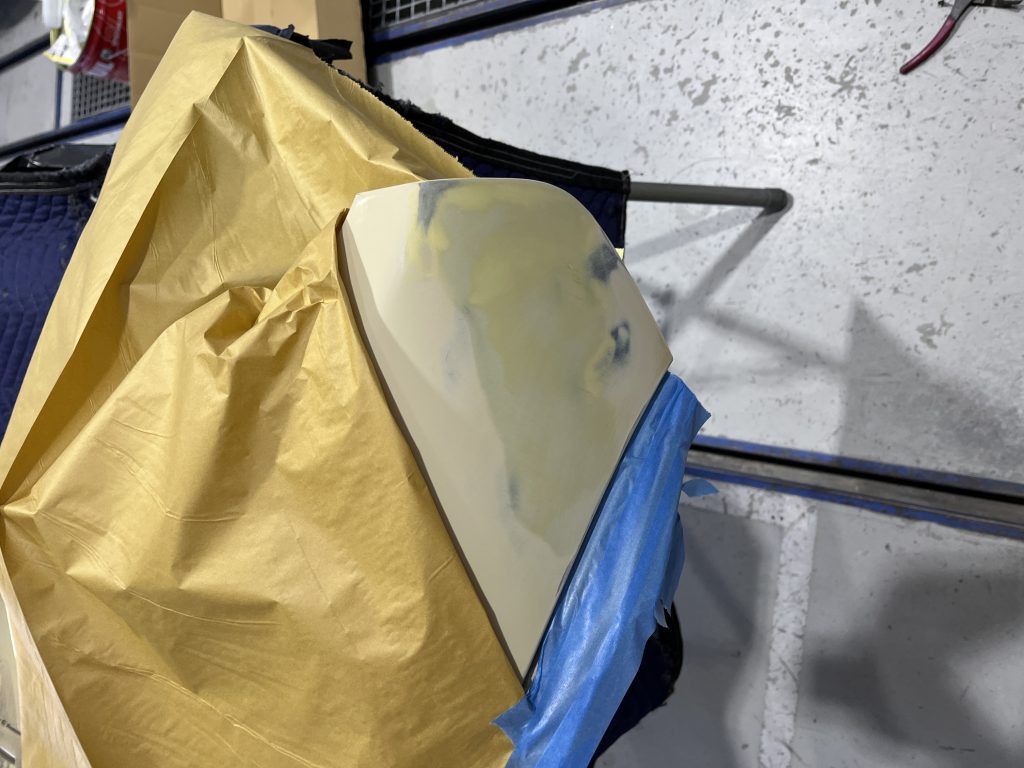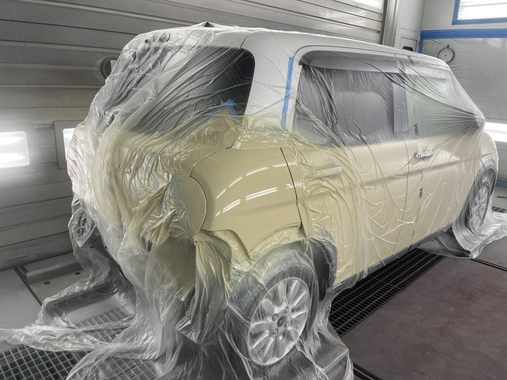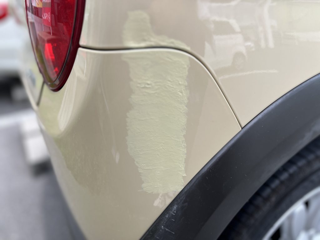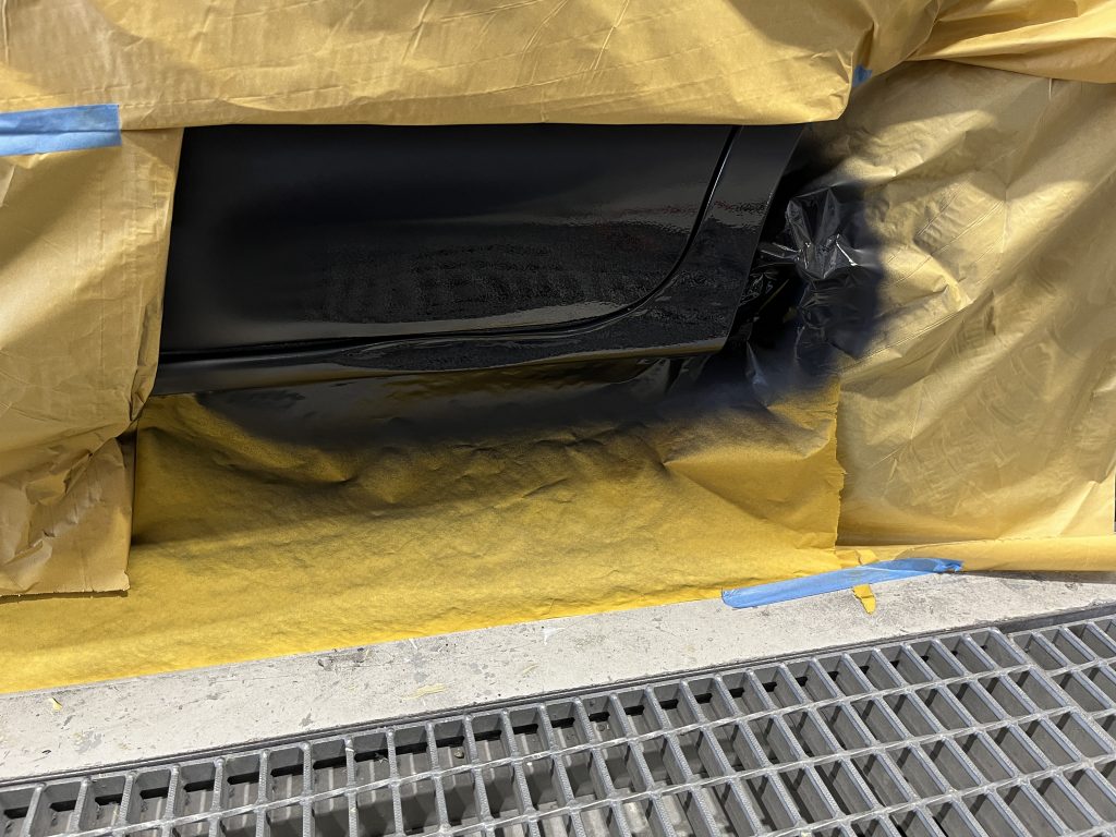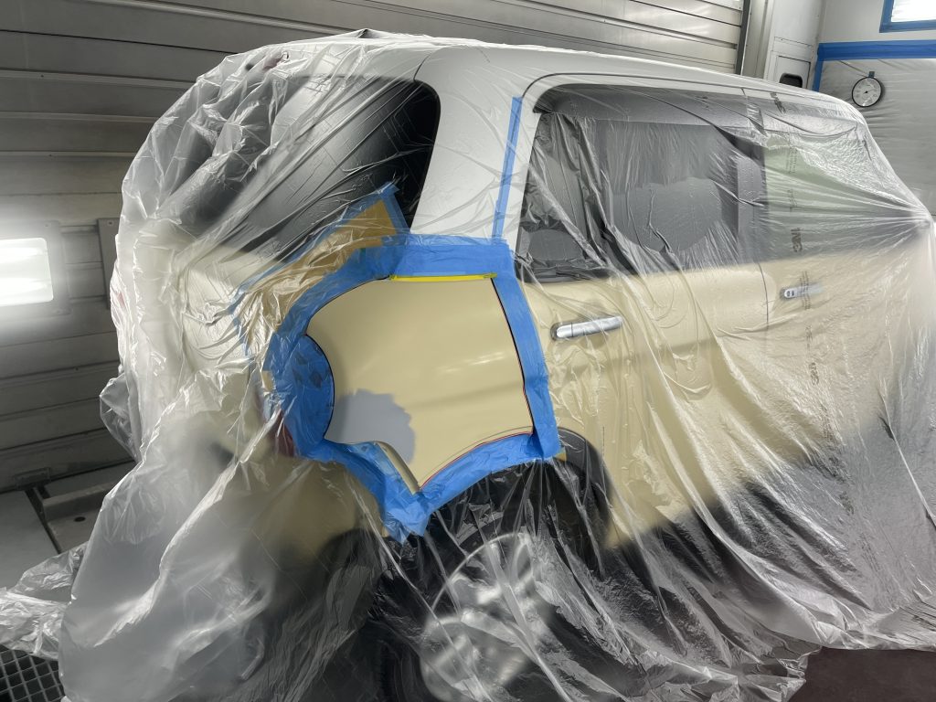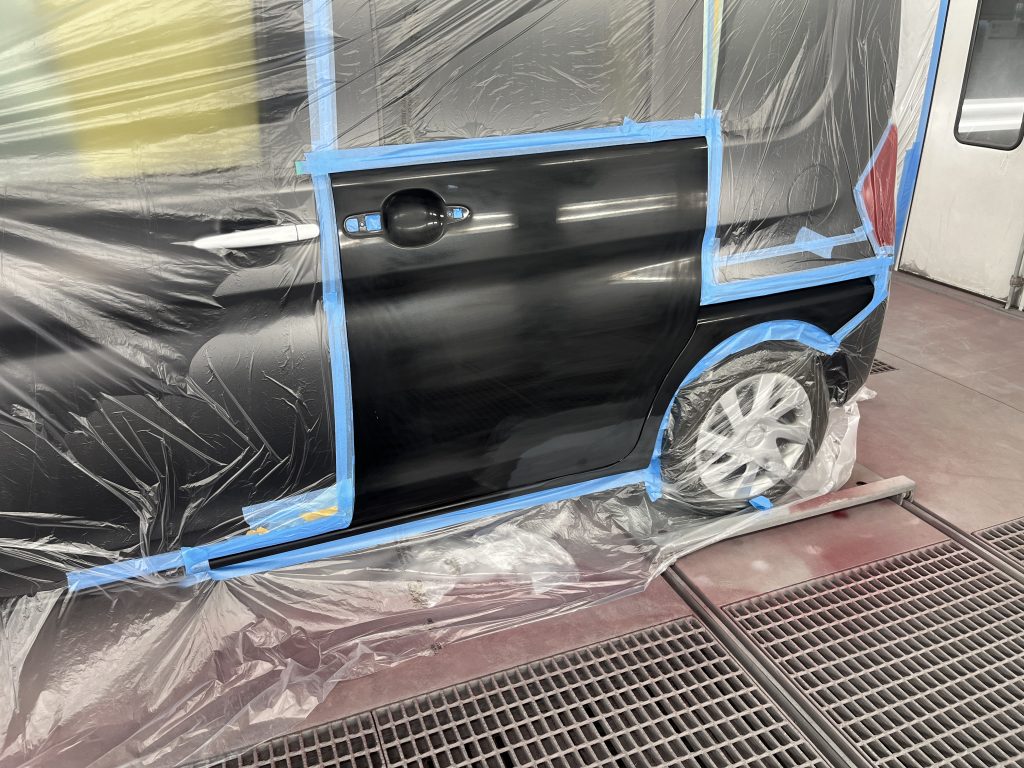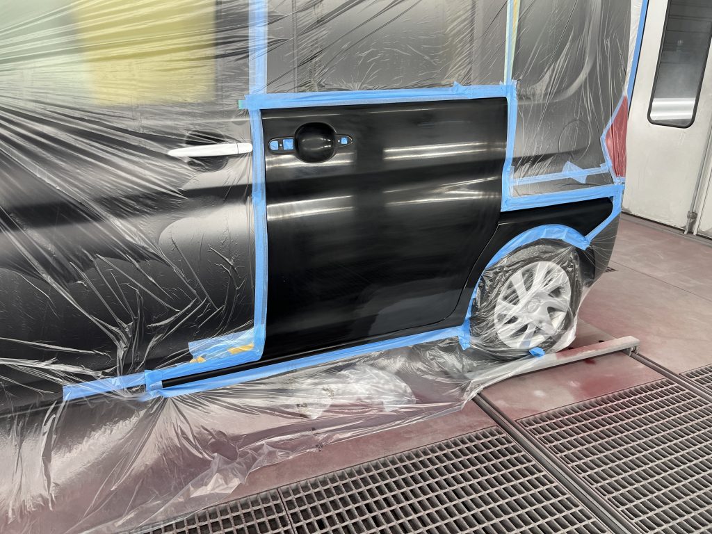 左のリヤドアとクォーターの塗装を行いました。